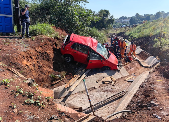 Upon arrival, emergency services encountered a harrowing scene. A hatchback vehicle, occupied by four college students on their way to their morning lectures, had veered off the roadway, losing control and overturning multiple times. The momentum of the crash sent the vehicle hurtling down a small embankment, where it eventually came to rest within a hazardous drainage system construction site.