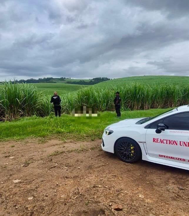 Reaction Officers responded at approximately 16:25 and on arrival located the body of an unidentified male believed to be in his 30s in the cane field. The body was in an advanced state of decomposition.