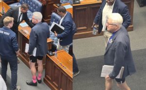 Western Cape Premier Alan Winde attended a sitting of the Western Cape Provincial Legislature in cycling pants, shoes and pink socks.