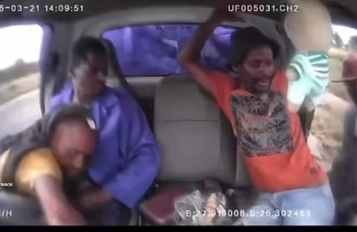 A Viral post shares dashcam footage of a March 21 armed robbery on Johannesburg’s N12 highway near Eldorado Park, capturing assailants in orange shirts and green gloves forcing open a blue sedan to rob a couple at gunpoint during daylight traffic.