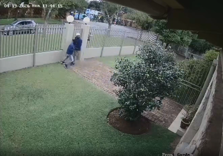 Anti-crime activist Yusuf Abramjee shared CCTV footage of a failed house invasion attempt in Rynfield, Benoni on April 19, 2026, showing suspects kicking at a front door before fleeing, with one limping from an apparent gunshot injury.