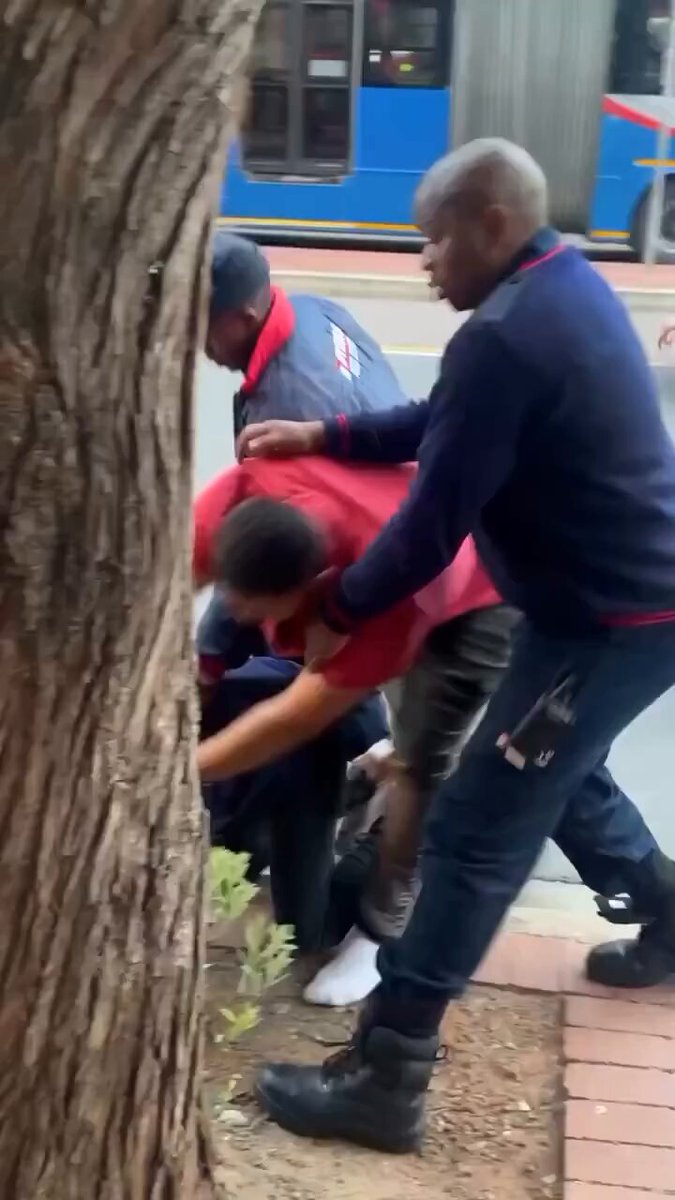 The poster frames it as xenophobic mistreatment of black foreigners in Durban with inactive security, but replies identify the man as a suspected phone or bag snatcher receiving mob justice, often in Cape Town or Pretoria.